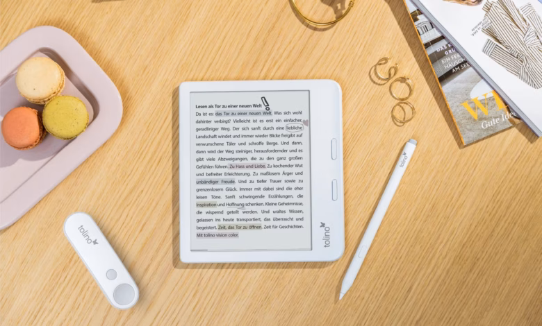 So kann etwa auch geblättert werden, wenn die Hände unter der Decke sind, der Reader auf dem Schoß liegt, irgendwo angelehnt steht oder in einer Halterung montiert ist, nennt Tolino einige Anwendungsbeispiele.