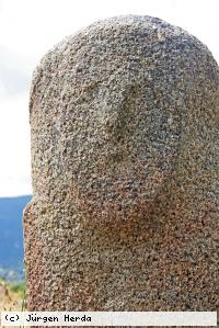 Manche Archäologen interpretieren die Steinfiguren als Krieger, ein französisches Pärchen, das aus dem Prusten nicht mehr herauskam, fand eine naheliegende Erklärung: Man muss keine allzu versaute Phantasie haben – wobei zu klären bleibt, was an Sex versaut sein soll – um die Stelen als Phallussymbole zu deuten. Die Eichel ist schön herausgearbeitet, ob die Gesichter dann als Personifizierung besonders prächtiger Phalliträger zu deuten sind oder ob die Neolithiker mit besonders schmucken Präservativen experimentierten, wird noch zu klären sein. Stoff genug für Woody Allans Alterswerk.