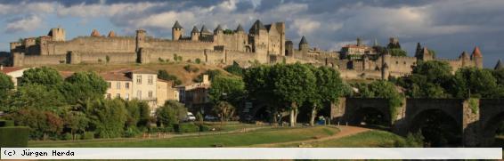 Aude mit Europas größter Festung:Mittelpunkt dieses von der Aude durchflossenen Départments ist das UNESCO-Weltkulturerbe Carcassonne (Knapp 43.950 Einwohner, davon etwa 200 in der Cité, der Befestigungsanlage), das seine steinernen Türme in den meist wolkenlosen südfranzösischen Himmel reckt. Am südlichen Flusslauf hält das Städtchen Limoux (41.500 EW) karnevalistische Überraschungen parat. Fast an der Küste findet man im quirligen Narbonne (126.400 EW) multikulturelles Leben.