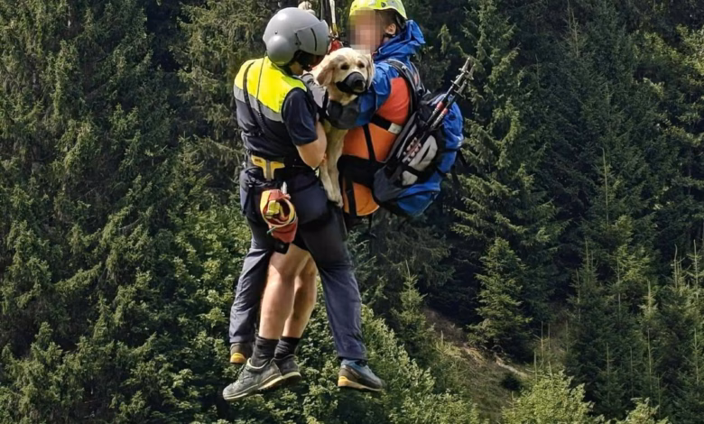 Der Besitzer erreichte das verletzte Tier über einen Umweg, doch er schaffte es danach nicht mehr, zum Weg zurückzukehren. Fünf Bergretter und die Flugpolizei rückten schließlich zu der Unfallstelle im Kleinwalsertal aus und brachten Hündin und Herrchen mit einem Hubschrauber in Sicherheit.