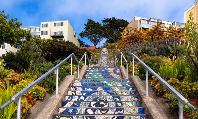 Mehr als 900 öffentliche Treppenaufgänge gibt es nach Angaben des Tourismusbüros der Stadt und manche sind mit ihren kunstvollen Fliesen-Verzierungen eine Attraktion für sich – zum Beispiel die 16th Avenue Tiled Steps mit ihrem bunten Mosaik einer Unterwasserwelt oder die Lincoln Park Steps mit ihren blumenartigen Mustern in warmen Gelb-, Rot- und Grüntönen.