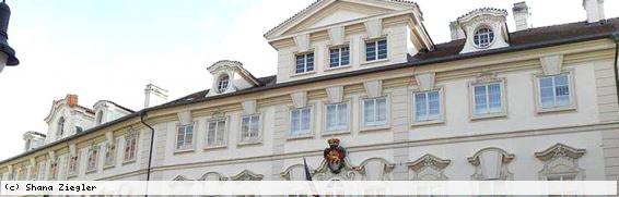 Der Palast besteht aus über 100 Räumen in vier Flügeln, die drei Höfe umschließen. Der zentrale Hof wird von zwei gigantischen Atlanten des Bildhauers Matthias Bernard Braun geschmückt. Anfang des 20. Jahrhunderts kaufte der Amerikaner Richard Teller Crane das Palais, Sohn des legendären Sanitär-Millionärs aus Chicago, Charles Richard Crane, und Schwager des damaligen Staatschef Tomáš G. Masaryk. 1925 verkaufte Crane als erster US-Botschafter der Tschechoslowakei das Stadtschloss an die Regierung der Vereinigten Staaten für bescheidene 117.000 Dollar.