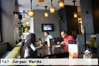 So viel unternehmerisches Umweltbewusstsein verdient außer Lob auch eine mobile Honorierung: „Weil wir das erste Hotel sind, das auf Öko-Strom umstellt, bekommen wir von Eon einen Elektro-Smart“, freut sich Schwender auf zusätzliche Aufmerksamkeit. Auch mit der Entwicklung der Gästezahlen kann das schwäbisch-münchnerische Expat-Team zufrieden sein: „Nach dem Einbruch der der Übernachtungszahlen in Prag und dem anschließenden Preiskrieg können wir mit einer Auslastung nach einem Jahr von 76 Prozent zufrieden sein – zumal wir die Hauptsaison noch gar nicht richtig mitbekommen hatten.“ 64 Dopelzimmer und 200 Hostelbetten warten heuer auf ökologische Anhänger einer neuen Zivilgesellschaftsidee.