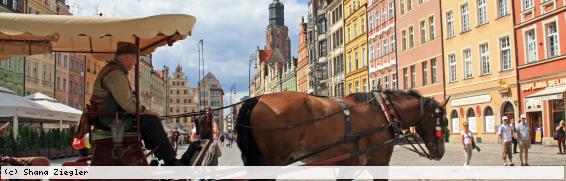 Es ist ein lauer Augustabend, wir sitzen im überdachten Freisitz der Restauracja Cesarsko-Królewska am Rynek 19. Wenn es noch einen Beleg für die Internationalität Breslaus gebraucht hätte, dann wäre die Speisekarte der missing link: Friedlich-schiedlich Multi-Kulti geeint drängeln sich auf der überbordenden Karta: