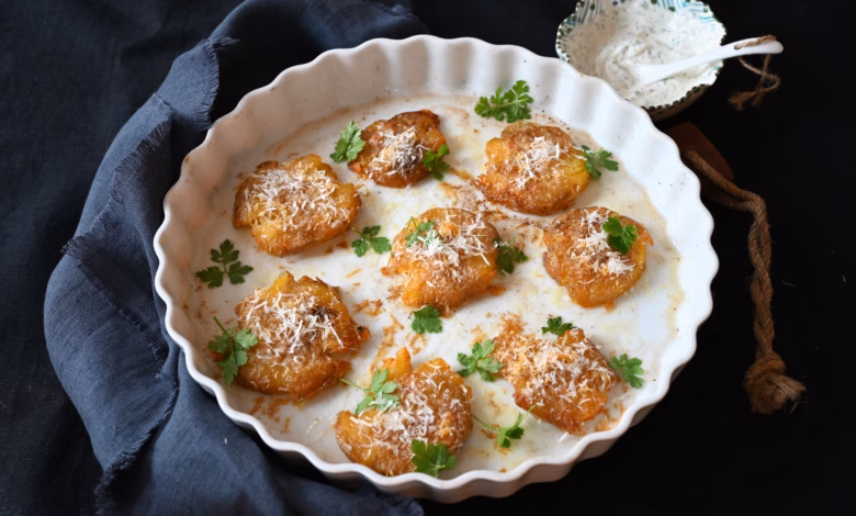Gekochte Kartoffeln übrig? Hier eine köstliche Idee, wie man sie verwerten kann: Die gekochten Kartoffeln quetschen – daher werden sie dann manchmal auch als Quetschkartoffeln bezeichnet – und mit geschmolzener Butter einpinseln. Die wird zuvor ordentlich gesalzen und mit frischem Knoblauch und Paprikapulver gewürzt. Dann noch ein wenig fein geriebenen Parmesan über die Kartoffeln streuen und ab in den Ofen, bis sie knusprig-braun wieder herauskommen.