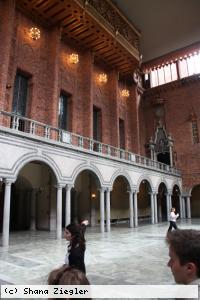 Nachdem jedes Jahr im Dezember die Nobelpreisträger ihre Auszeichnungen im Konzerthaus erhalten haben, pilgern ebenfalls jedes Jahr an die 1300 Gäste in die 1500 Quadratmeter große Halle des Stadshuset – jedem Gast stehen an seinem Tischplatz 60 Zentimeter zu, den Preisträgern und der königlichen Familie, die diesen einer italienische Piazza nachempfundenen Saal über die Ehrentreppe von Goldenen Saal darüber betritt, immerhin 80 Zentimeter.
