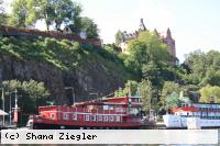 Entlang der unzähligen Anlegestellen der Inseln passieren wir ein historisches Dampfschiff, ein altes feuerrotes Feuerwehrschiff, und landen schließlich vor den Schleusen zur Altstadt, wo ein Aufzug aus dem 19. Jahrhundert zu einer Aussichtsplattform mit Restaurant hochfährt.